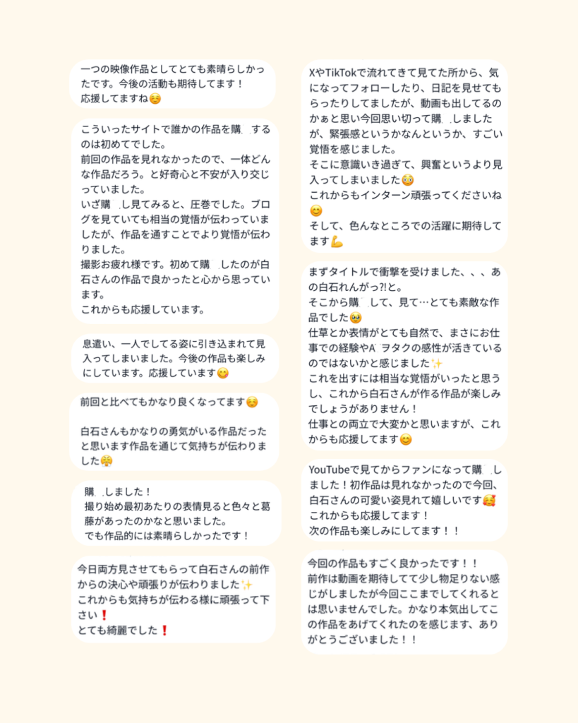 改めて、作品を見て感想を送ってくれた皆さん、本当にありがとうございました🙇♀️
